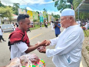 Foto: Ketua Majelis Ulama Indonesia (MUI) Kabupaten Kepulauan Sula Bapak H. Abd Rahman Kharie saat Membagi Daging Qurban kepada warga yang membutuhkan
